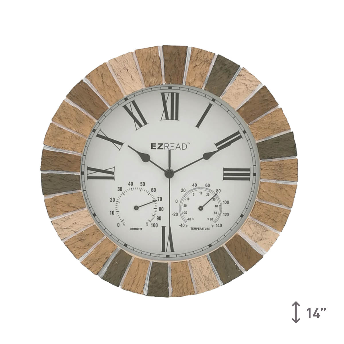 EZREAD® 14" Stone Mosaic 3-in-1 Clock/Thermometer/Hygrometer