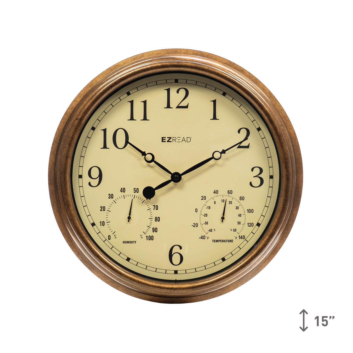 EZREAD® 15" 3-in-1 Patina Clock/Thermometer/Hygrometer